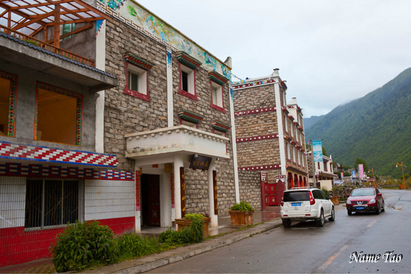 下午6:00左右到达日隆镇。宾馆是之前订好日月山庄,位于日隆镇长坪沟景区公路旁,从巴郎山猫鼻梁下山后第一座桥右拐进入长坪沟景区内,沿长坪沟景区公路及河边前进600米即到。