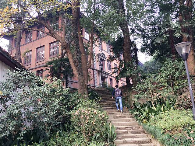 走了不少路,其实都已经筋疲力尽,来浙大一来看看名校风范,二来寻觅一些吃食。这个校区非常古朴,用教授话说是很有感觉,我的印象是可以拍校园惊悚片了,建在山上,树多幽暗,教学楼礼堂都是上世纪风格。
