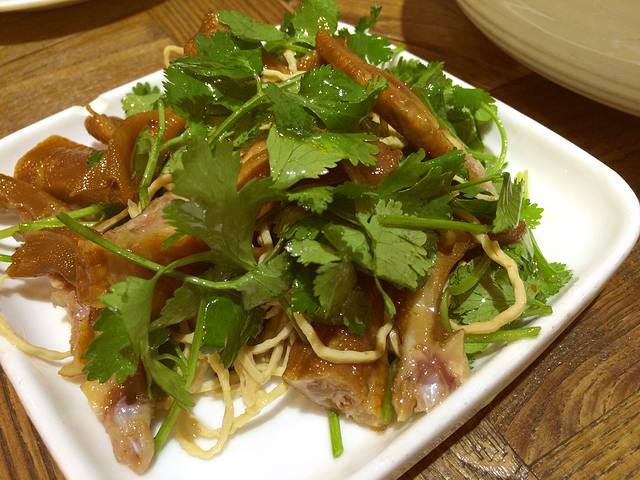 云丝拌鸭掌,香菜很新鲜,淋得香油闻起来特别香,但是又不同于北方芝麻香油味道