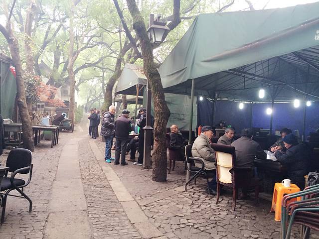 第二天清晨,我和健哥现在旅馆旁边景点走动走动。吴山景区就在附近,踏着青石板路,慢慢向上,山上行人不多,空气很清新,看到一直毛茸茸的小东西从这棵树跳到那棵,应该是只小松鼠吧。吴山上有很多茶棚,里面坐着很多五六十岁左右的老人,带着茶杯,一个暖瓶,边喝茶边打牌打麻将,