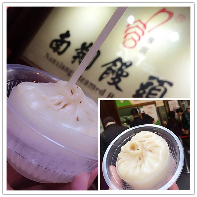 好盆友帅锅说,来城隍庙不得不吃的是南翔馒头店的蟹黄包。所以,帅锅排了大半个小时的队,15元/个,先用管吸汤,很咸略带腥味,吸完汤后吃皮,其实皮是没有什么味道的。虽然是满足了我这个馋猫级吃货的好奇心,但是个人觉得,不推荐,太贵且没那么好吃。回来后跟男朋友分享上海的点滴,男朋友说你盆友对你真好,因为盆友帅在南翔只买了一个蟹黄包,给我的。