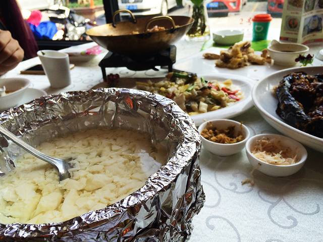 椒香瓦块鱼,满满一大盘,香辣可口,很入味,尤其喜欢里面的配菜,金针菇、黄瓜、木耳,现在想来还是口水依旧