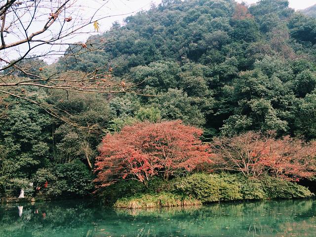 穿过龙井村往前走便是九溪十八涧,树木茂盛溪水潺潺,好山好水,这是大自然的恩赐。九溪十八涧很长,走了很远的路,就在又累又饿的时候,峰回路转,一大片蓝色的湖水,后面是苍翠的山,还有瀑布,景色美艳不可方物,不枉这一路行走。