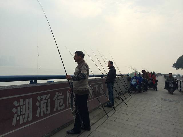 纵使我们三个青年人,这般行走下来实在是体力不支,于是打车下行到钱塘江,面包车10元。江面雾气很重,很多人在垂钓,有鲈鱼。有句诗好像就是“江上往来人,但爱鲈鱼美”当地人更是情有独钟啊。