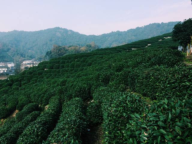 龙井村在山上,每家每户都有小茶室,可以品茶,村里老少看到外人就拉你你喝茶买茶,这倒不是特别招人喜欢。走几步就有人凑上来问,你说不要,就一直跟着。过了村子是整片的茶园,郁郁葱葱,跟随山岭起伏,满目青黛。后来在一妇人指引下去了乾隆皇帝种的十八棵茶树那,那边有一泉眼,就叫做“龙井”,里面溪水潺潺,古朴幽静。从景点出来后我们并没有跟随村妇去品茶买茶,后来此事得到了父亲批评,我们不买茶就耗费了他人半天时间,买门票村妇帮忙砍价省去了15元,我们哪怕买个一二两最便宜的茶叶也是应该的。我想来也深感歉意。