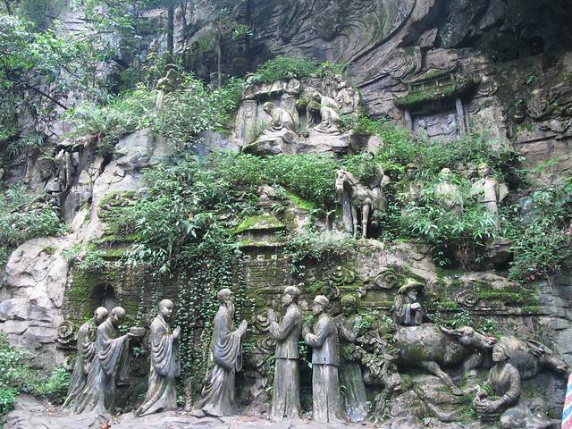 过了牛心亭有两幅大面积的石壁浮雕,这个用术语讲,貌似是叫摩崖石刻。分别是李世民和康熙来峨眉山的情景。其实按工艺来讲,确实是美的。可我对这种歌功颂德,拍专制统治者马屁的内容着实没什么兴趣。