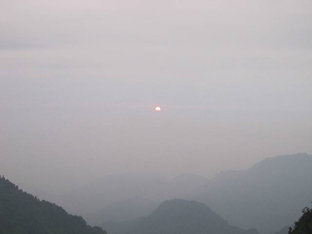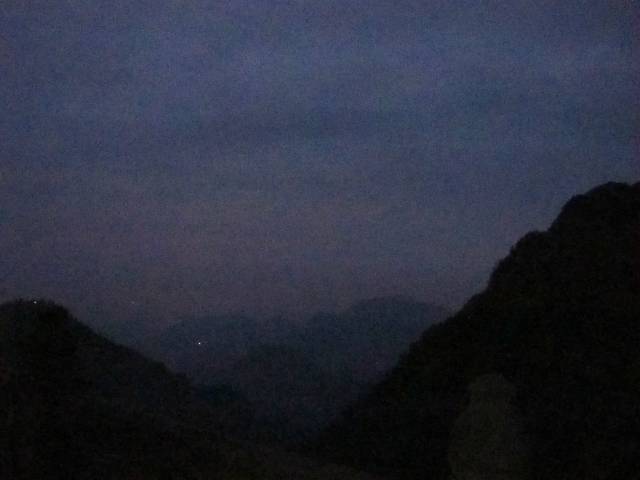 凌晨5点,随着老婆手机的闹钟,我也极不情愿地爬出了温暖的被窝。此时我非常想以我可觉得天阴看不到太阳的借口再多睡一会儿,但爱妻如此兴致勃勃,我也不愿扫兴。凛冽的山风昨晚就已经体会过了。说实在的,这个时候身上有没有那件儿眼儿大片儿薄的麻布褂子都没什么差别的。