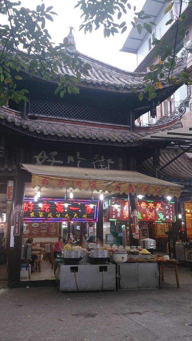 这个牌坊的外面是那家没有收银员的小吃店,摄影师右侧是小吃街