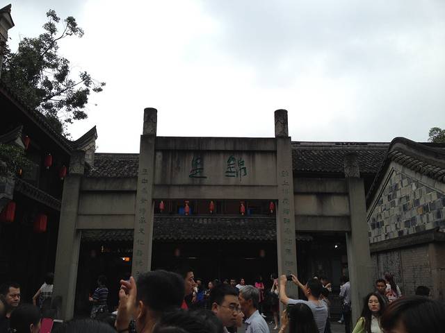 我们离锦里的距离不到1km。简单收拾了行李,不到20分钟就走到了锦里位于武侯祠大街的门。也是因为我们俩俗人,走地一圈儿时,两双眼睛只是在寻找哪里有可以往嘴里送的摊铺。虽然也有两家看着比较正式的馆子,和一家卖“张飞牛肉”的店。但这不是我们要找的四川名小吃,竟有些许失望。对路两旁现代气息浓厚的纪念品小店和酒吧更是视若无睹。