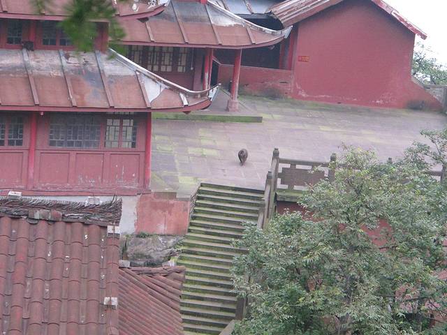 女生永远是爱磨蹭的,吃完饭她又要回寺中解决一下后顾之忧。本想着现在才7点多,时间还充裕,“山大王”们还有一个多小时才上班呢。结果老婆进去没一会儿,这些“爷”们就出现了。还有一只在老婆所在的屋顶上又蹦又跳,听那声音感觉那房坚持不了多一会儿就得塌。