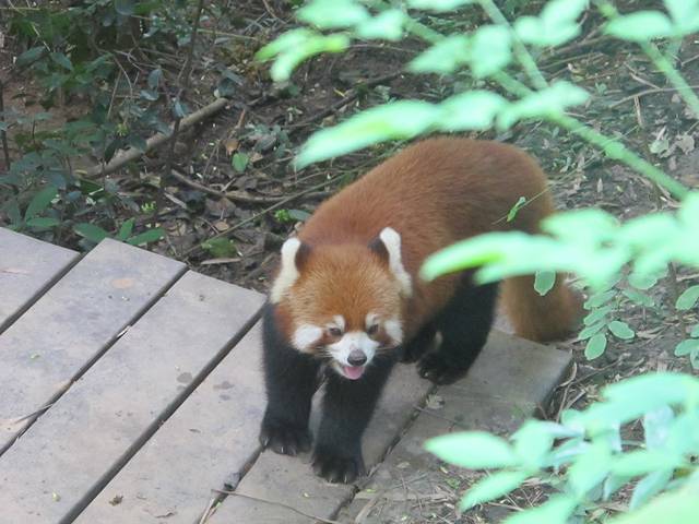 相对大熊猫,我更喜欢小熊猫,可惜钻挤能力和摄影技术限制了我,没照到几张正面的照片,这张是为数不多的几张正面照之一
