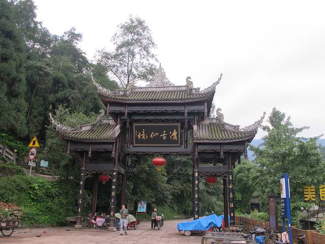 出了酒店向左,不远就是旅游大巴和长途客运站的发车点儿。这也是我们就此决定回成都改坐长途车到原因之一。走近车站,照例又有好几个黑车司机在拉客。我们的正义感很强,最受不了这种勾当,于是选了其中的一个就走了……主要是旅游巴士的票价定得太2了。每个人40不管去哪儿。我们去清音阁和去雷洞坪是一个价儿。那我们还不如80元钱来一辆专车,送我们去清音阁呢。
