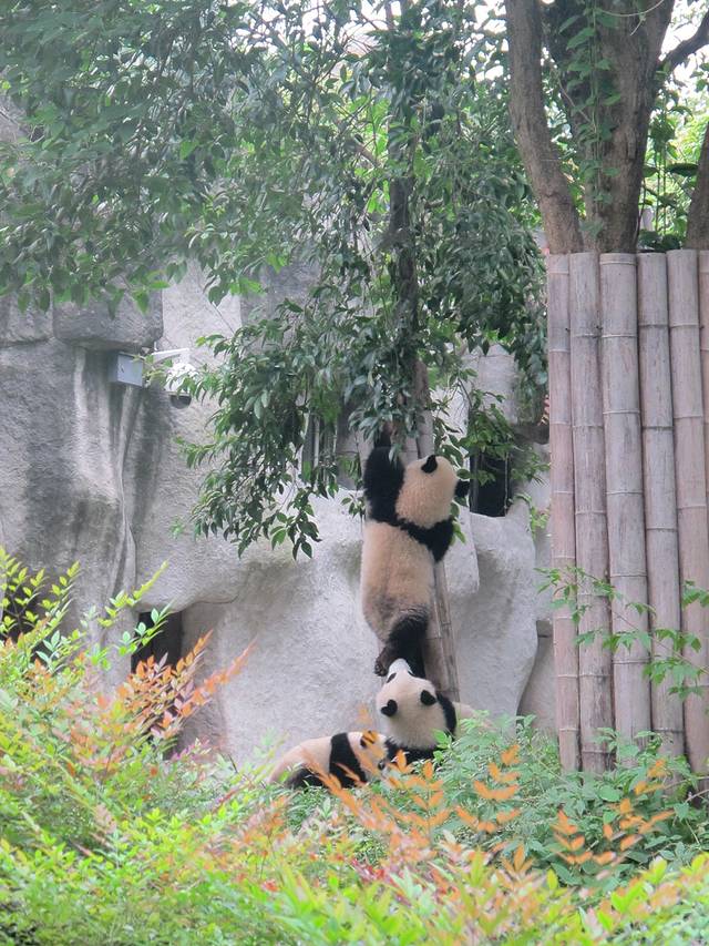 这算是大熊猫的幼儿园吧,小盆友们还是很有活力的。