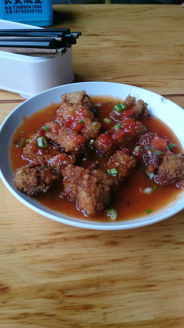我们并没有看到传说中的众比丘做早课,而只是一个和尚在敲钟。四处看了一眼,没有什么有趣的事情,便要为我们的五脏庙做打算了。庙中的早餐7点开始,馒头白粥,不是免费的。幸好寺院的后面的一家小店给了我们更多的选择。也许是不自觉地拿斋饭比较,觉得这盘腊肉炒饭味道还算不赖。