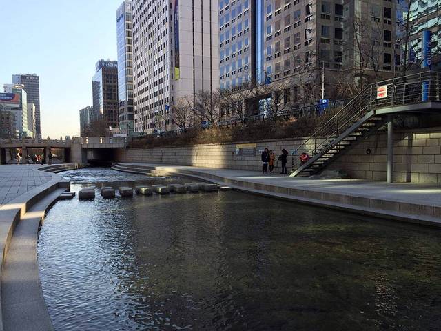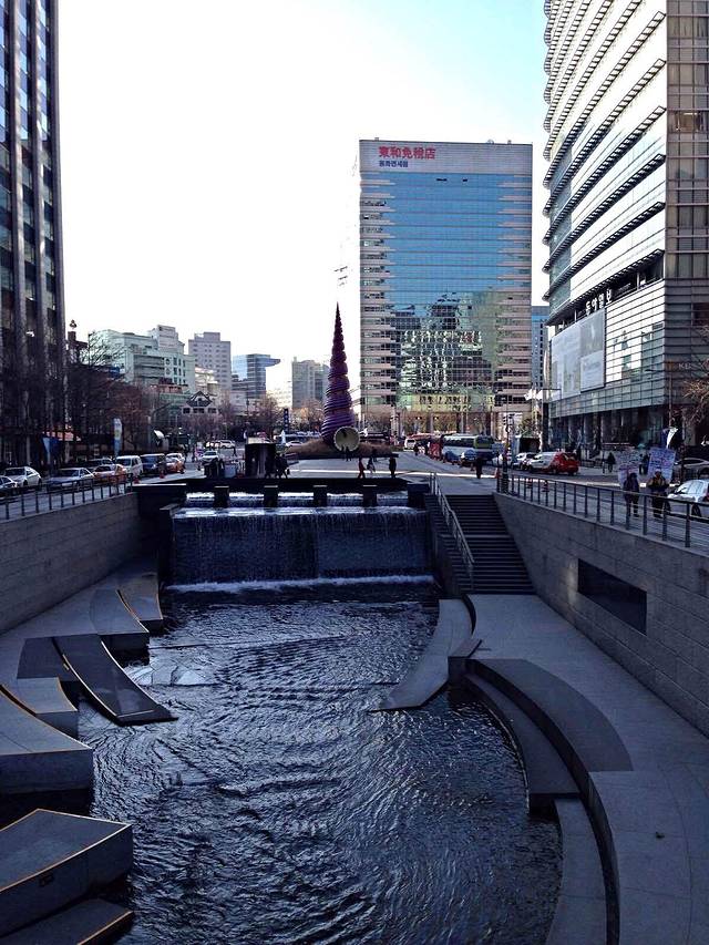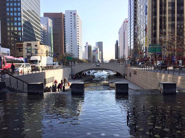横贯首尔的清溪川是一条人工开凿的溪流,一直向东绵延到上往十里地区。现在水道两侧种植了各种树木,放置了洗衣石、传统壁画,还修建了22座各式桥梁,风景如画,在此散步游览十分惬意!从光化门到东大门这10.84公里的溪流中流淌着首尔的过去与现在。到达方式:地铁5号线光化门站5号出口。