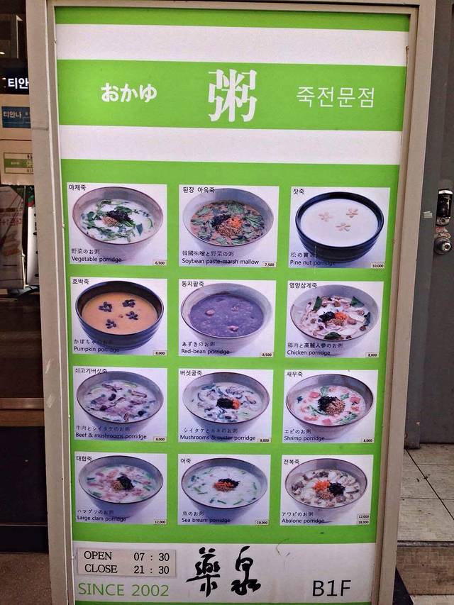 餐厅主要以粥、烤肉、炸鸡、参鸡汤为主
