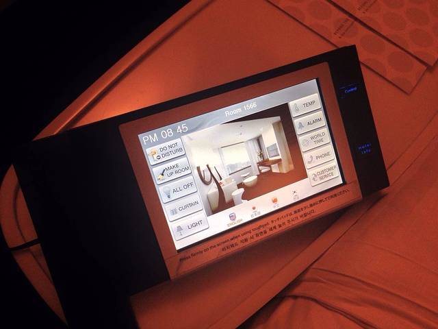 控制器,灯光、窗帘、温度均可以调节。