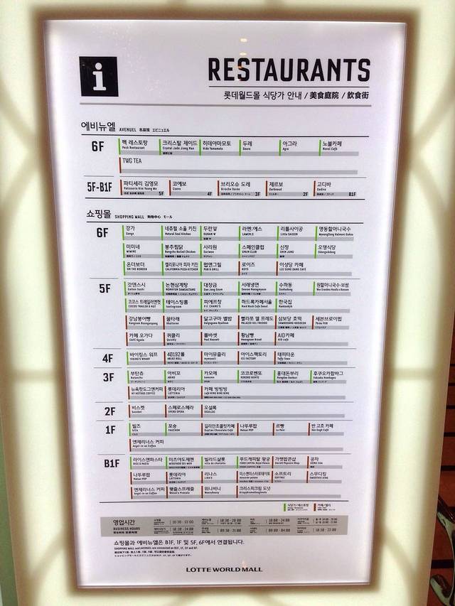 乐天百货涵盖了乐天青春馆、乐天精品馆、乐天百货、乐天酒店等系列设施,服务台有中文导购。乐天百货9、10、11层为免税店,12、13层为餐厅,地下一层有超市与美食街。乐天青春馆一层的Line专卖店不容错过,商店与酒店之间的星光大道也值得一逛! 到达方式:地铁2号线乙支路入口站7、8号出口。