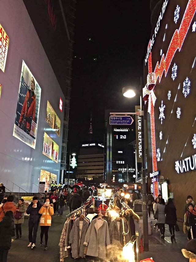明洞汇集了百货商店、化妆品店、咖啡馆、餐厅等,人气非常旺。由于明洞店家众多,也时常有所变动,建议去游客中心拿一本最新的中文地图再去逛吃逛吃。冬天街道上有穿红色大衣上带“i”标志的旅游咨询员,各语种都可以交流,更有旅游警察随时为您服务。 到达方式:地铁2号线乙支路入口站5、6号出口。