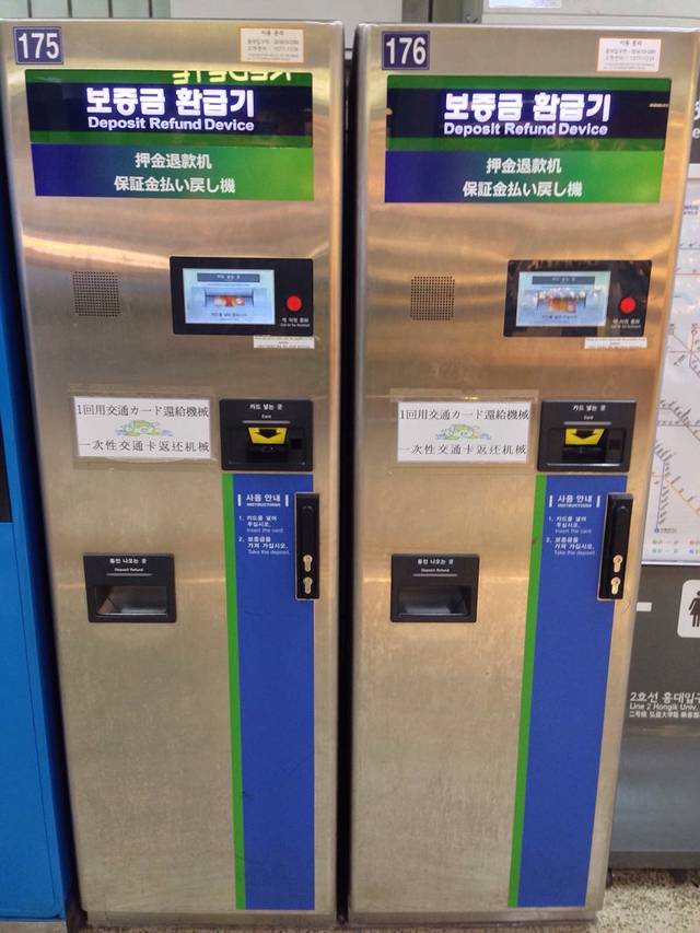 首尔地铁车票票价含500韩元押金,使用完毕后需在押金退还机上拿回押金;