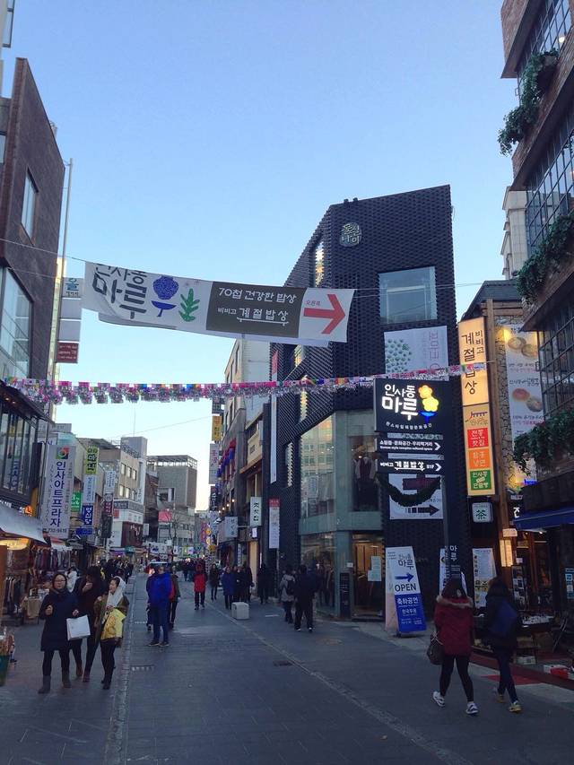仁寺洞是北起安国洞十字路口向东南方向延伸至三一大路的呈斜线的街道。街道两旁遍布古董店、茶室、咖啡馆、韩国纪念品店、传统工艺品店、韩服摄影店等各式店铺,还有龙须糖、年糕等手工作坊来满足游客的好奇心与味蕾。 到达方式:地铁3号线安国站6号出口;地铁1号线钟阁站11号出口。
