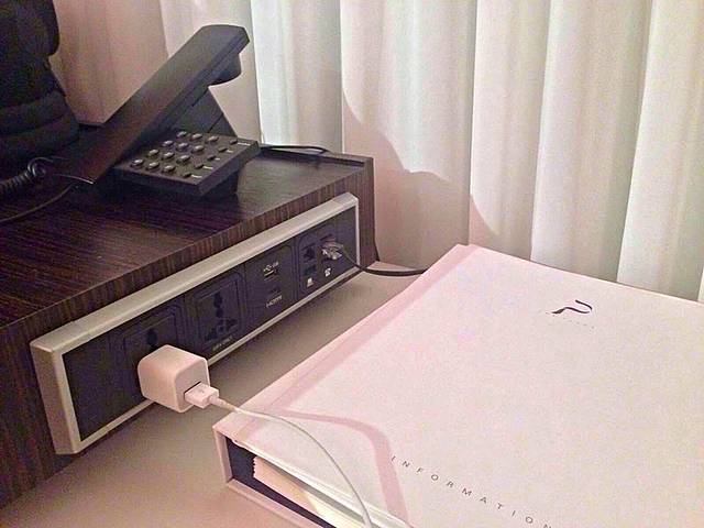 酒店的插座通用性很强,还有USB插口