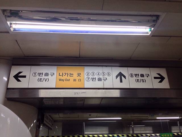 乘坐首尔地铁一定要搞清楚从哪个出口出去!地铁报站时有的线路会有中文,但是站名是以韩语发音报出而不是汉语发音,所以为了安全起见一定要记住站名的编号:例如328,就表示是3号线的第28站,其余以此类推。