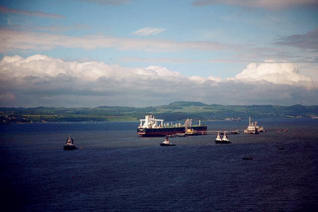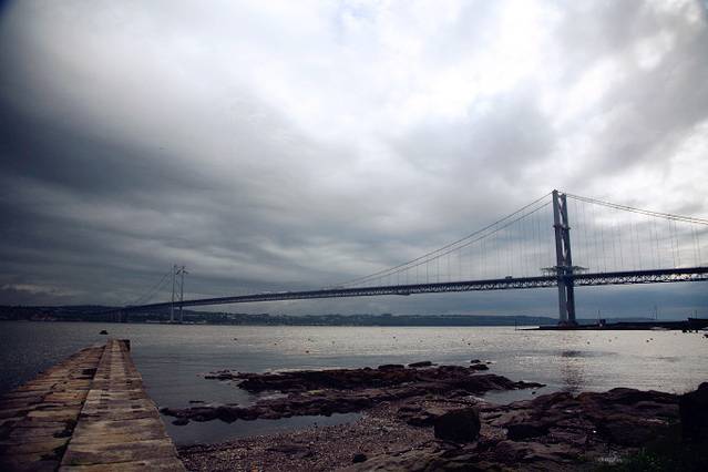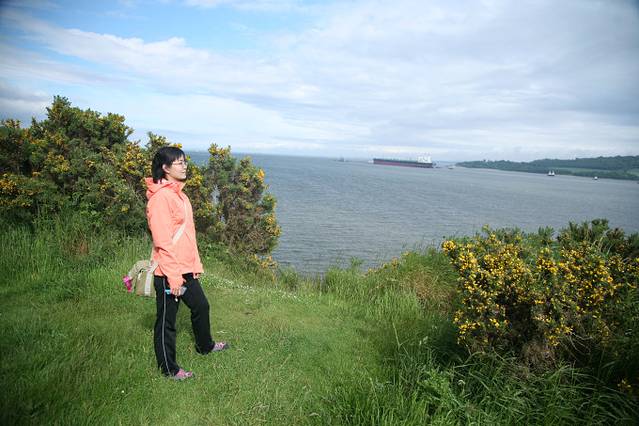 在桥上看福斯湾美景,满城阴云的爱丁堡竟然在海湾上开了个蓝天的口子,让我们颇为兴奋。