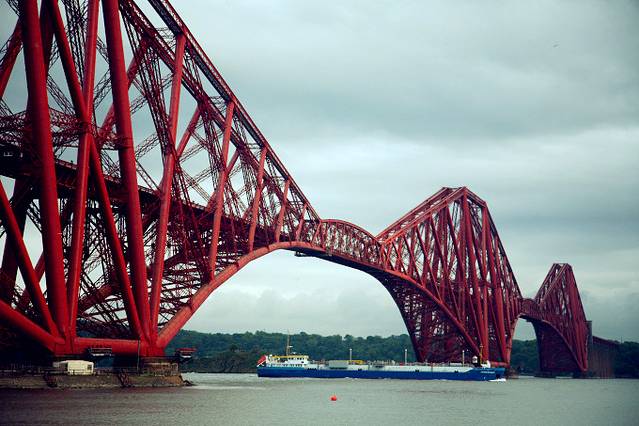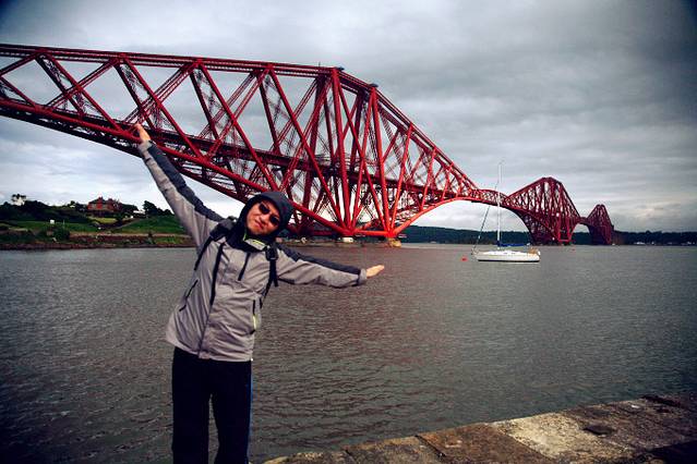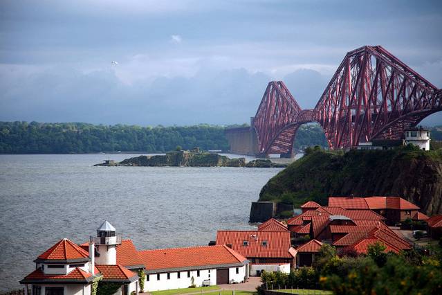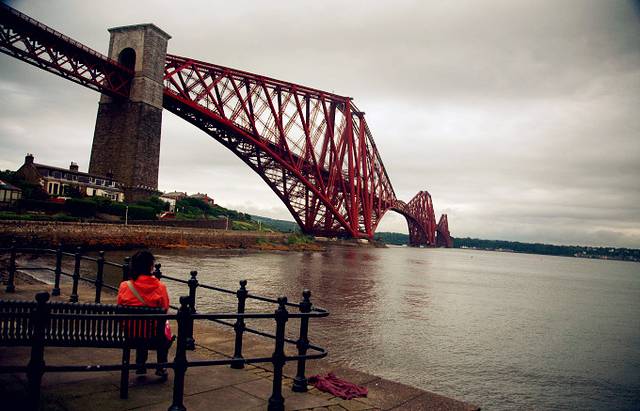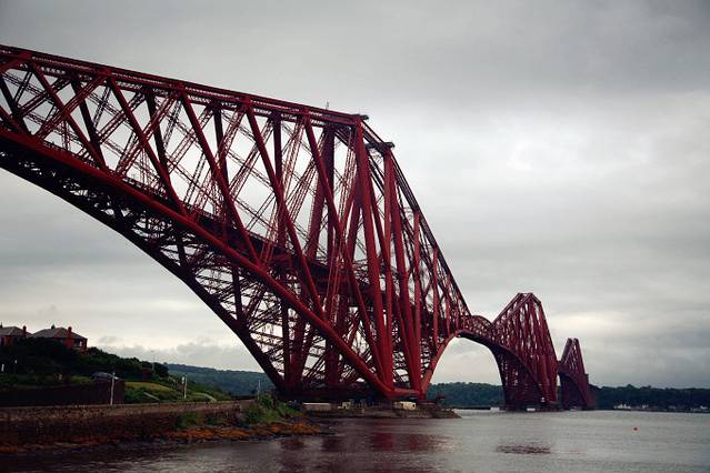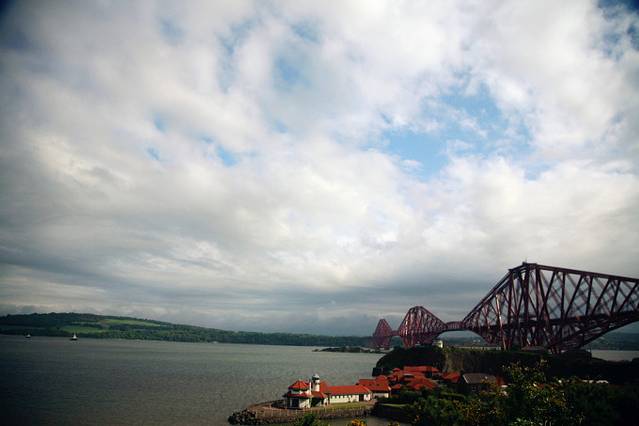 位于爱丁堡北部的福斯铁路桥(Forth Bridge)是铁路桥梁史上的一座里程碑,英国人非常引以为豪,在今年发行的一套“A-Z系列英国最具特色的26个景点”邮票中,F就是Forth Bridge。据说当年李鸿章也来参观过此桥,并准备在渤海湾也修一座。这座铁路桥至今仍是苏格兰东部的重要交通枢纽,当年我坐火车从爱丁堡前往圣安德鲁斯时从桥上经过,一直想能够好好欣赏一下这项杰作,所以在爱丁堡的最后一点时间,我们留给了这座桥。