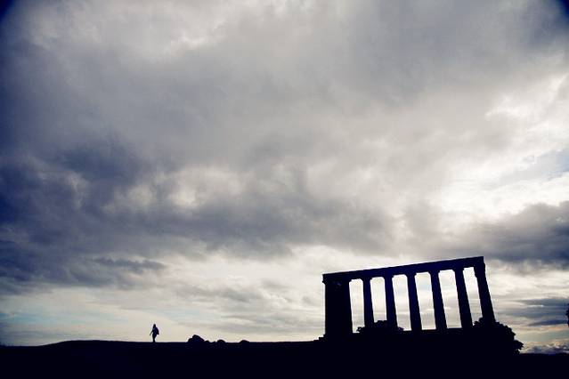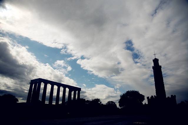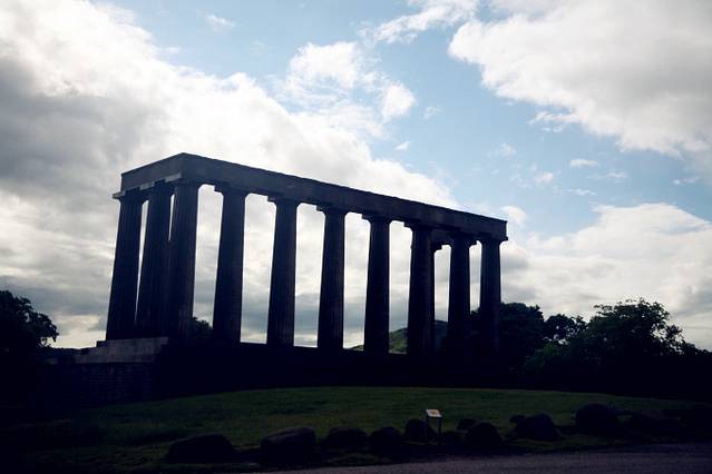 这里是爱丁堡市区的制高点,有一个类似于希腊神庙的建筑。这座建筑的巧妙之处在于,柱子边缘利用透视效果,使得远看就如同一个薄薄的平面。