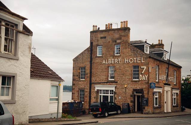 从火车站走到海湾边要下一段很陡的坡,整个小镇基本没人,不过竟然还有一个旅馆,看上去也是个老店。