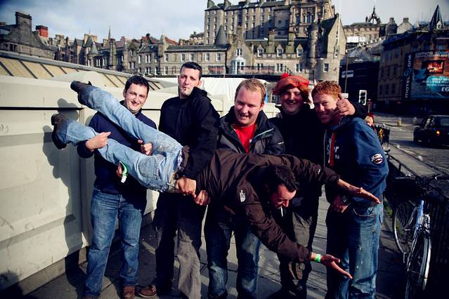 坐火车回到爱丁堡,太阳出来了,酒鬼们也High了起来。