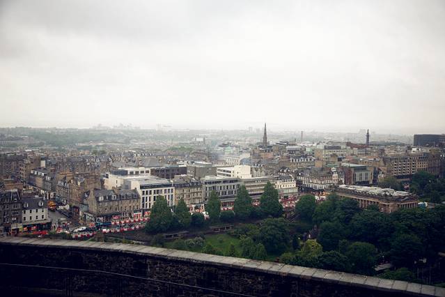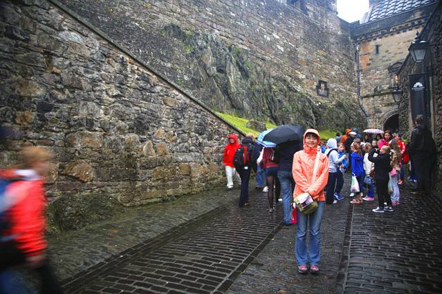 连续享受了很多天英格兰的晴空,以天气恶劣闻名的苏格兰一开始就给了我们下马威,风雨交加让爱丁堡的浪漫气息荡然无存。眼见着雨稍微小一些,便想冲到城堡看看,哪想半路雨又哗哗而落,唯一值得庆幸的是,我们的防雨冲锋衣质量还不错。