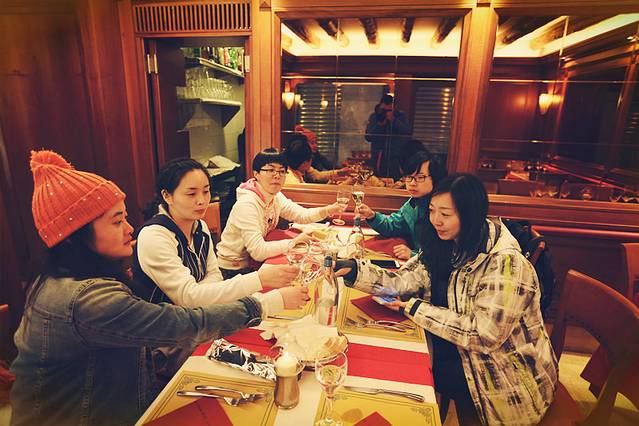 为快乐的一天干杯,友情提醒,T骨牛排请两人一份。