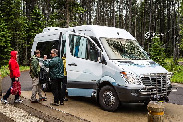 在冰川国家公园,游客可以享受到很多人性化的服务,包括搭乘免费的穿梭巴士前往与“天堂公园”(Heavens Park )遥呼相应的平台高度,在冰川国家公园大部分的道路还处于溶解冰雪的非旅游旺季,自驾车只能到达半程的停车场,因此,乘坐园区内的穿梭巴士,我们享受到的不仅是免费的礼遇,而且还包括自驾所没有的“特权”。