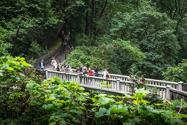 沿着饥饿溪侧的马克哈特斐纪念步道可以上到这座行人天桥。 过桥是一处观景平台,从这个观景平台往上,沿着小马尔特莫马步道可以到达上部瀑布的顶部,游客可以在这里鸟瞰哥伦比亚峡谷。