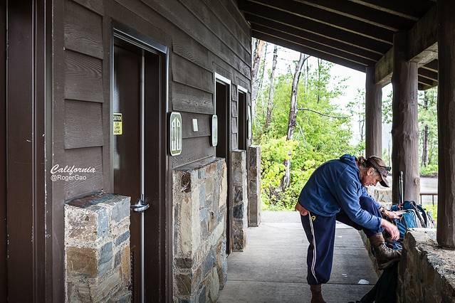 冰川国家公园独有的山经和冰川奇观,深受徒步爱好者的青睐,在这些徒步爱好者的当中,有的千里迢迢从东部的州份专程前来,有的则风雨不改成为了这里的常客,图中的这位老妪,看起来已经年过70了,但见她孤身一人在雨中徒步而认真地整理装备,这种场景在北美地区较为普遍。