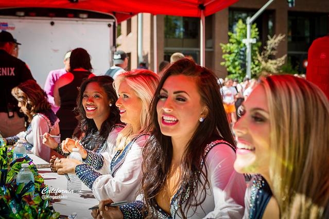 表演完毕后,海鸥啦啦队的美女们还热情不减地为粉丝们签名,笑容可掬地解答宾客的问题,表现出非常高的职业素养。