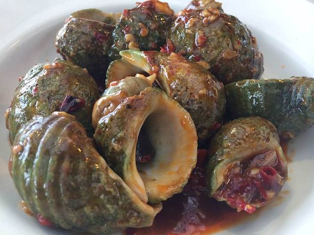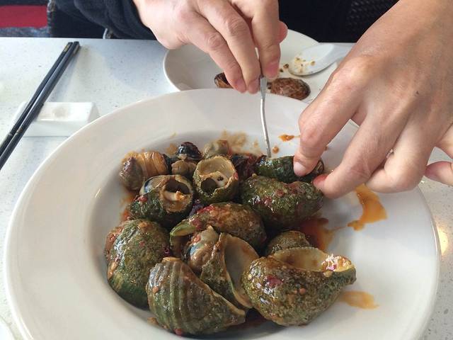 本打算在Fish Market吃黑鲍鱼的,结果没吃成相当扫兴。出了鱼市,对面就有家石记活鱼,碰巧他们有卖原只黑鲍鱼,所以我们就将就坐下吃了。味道还不错,但说真话跟其他种类的鲍鱼也没啥不同啦,反而腥味儿还较重呢~