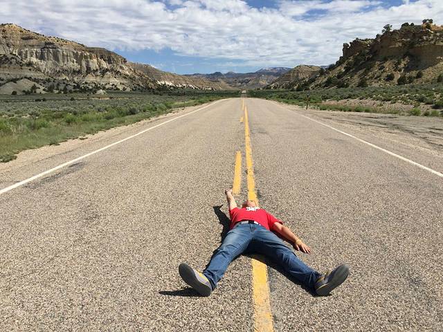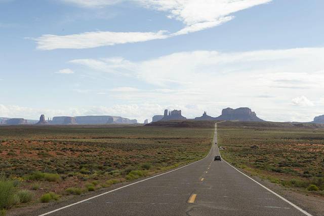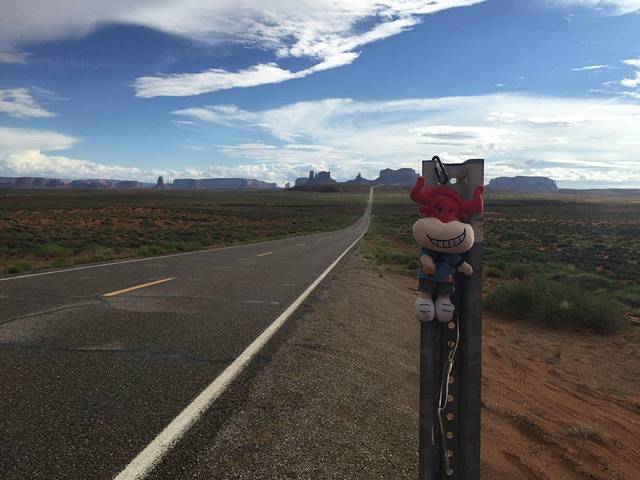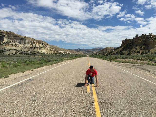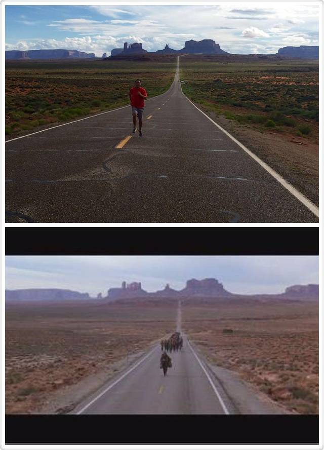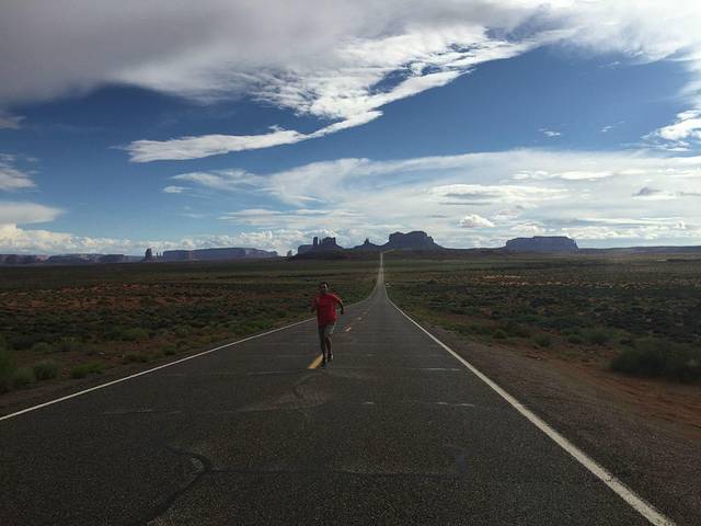 离纪念碑山谷不远,去往Moab方向的163号公路上有一个著名的景点,经典的好莱坞励志电影【阿甘正传】中让人印象最深刻的一幕,阿甘的母亲去世后,他从美国的东海岸跑到西海岸,最后跑到了这里停下脚步,对着他的追随者说了一句"I'm going home" 此刻的背景画面就是Monument Valley...