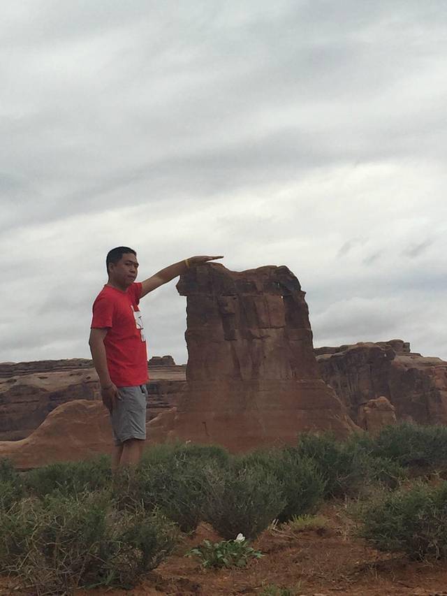 不得不说的故事:我们在美国租车终于又遇到了轮胎漏气,上次在贵州自驾黑夜轮胎漏气已经搞了一遍了,结果在美国租车都能发生轮胎漏气的问题,我和轮胎总是有点过节。前一天在拱门国家公园,汽车显示屏莫名的就跳出有一个轮胎胎压偏低,一看轮胎是有点瘪了但是又没听到漏气声,当时就想要不要回小镇修好轮胎再走,但是由于拱门国家公园太大了本身游玩时间就紧凑,而且后来看看胎压虽然低了一点但是没有再变低的趋势,于是就决定以玩为先,要是真的半途轮胎挂了就只能电话租车公司了。还好昨天轮胎支撑住了,今天想想要走那么远的路,还是赶紧在摩押修好轮胎再走,问了营地管理员修车铺,幸好摩押小镇不大,还算比较顺利的找到了修车铺,修了一下才安心上路。