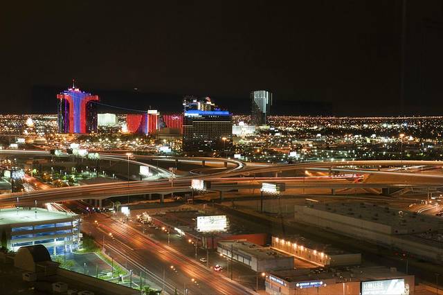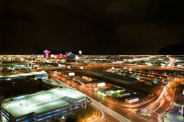 因为太晚了,我们哪个赌场都没去,我们来了赌城只是睡一晚的... 从房间的窗户,拍了几张拉斯维加斯夜景,真是到此一游了.
