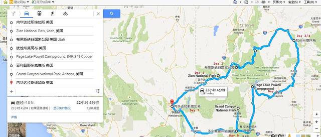 不算上洛杉矶那一段,我们的国家公园之旅的整个路线,就是这样画了一个圈。
