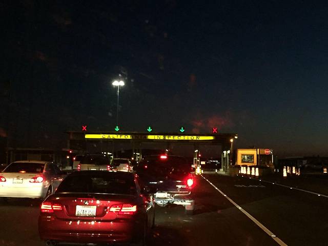 一路真是堵堵停停,快到洛杉矶又堵了,居然是个检查站,检查什么农产品的,真是的,以后再也不进大城市了。