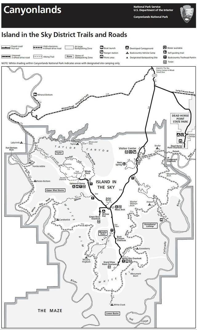 其实峡谷地国家公园分成三块区域也是有理由的,因为峡谷地是被科罗拉多河以及Green River切割而成Y字型的,自然而然形成了以河流为分界的三块区域,而且从一块区域到另外一块区域需要绕行很多路才行。