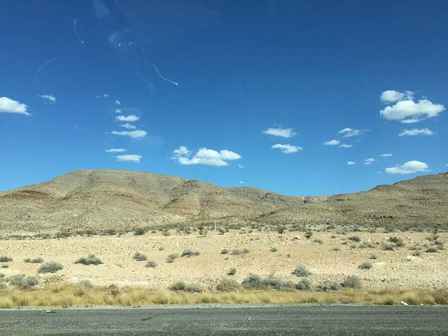 从williams到拉斯维加斯的路上,才真正感觉到什么是真正的荒漠,日落时分我们经过途中一个小镇: baker,气温是109华氏度,就是43摄氏度,然后出发时我们还忘记加油,不得不在baker停留加油,一下车一阵热浪差点把自己吹晕,而且整个这附近地区的油贵的惊人,通常美国的加油站都是3美金一加仑,便宜的地方只要2.8,这个地方要将近4.6-4.8美金,不知道是不是因为这里天气太热导致运输保存成本太高。总之有种取经途径火焰山的感觉:)