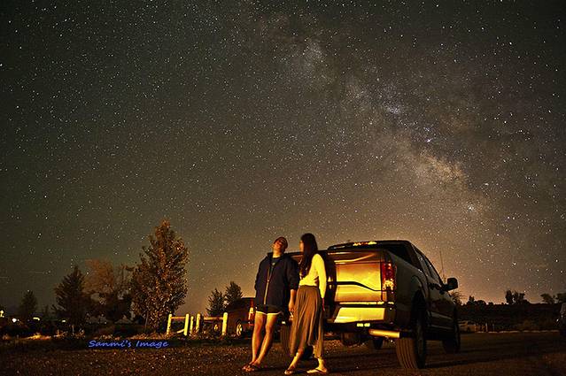 到了营地天气已经完全好转了,营地虽然有些许灯光,但是银河依旧如此清晰可见!激动的根本就睡不着,虽然已经到quiet time了,我们还是很吵的一会儿发动车子把车子挪动到各种自己想要的位置做前景,一会儿又打手电一会儿又开车灯,还好大家甚是宽容,没有把我们骂一顿。