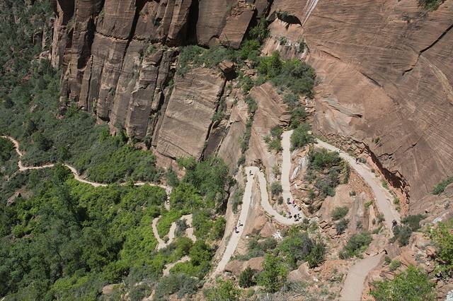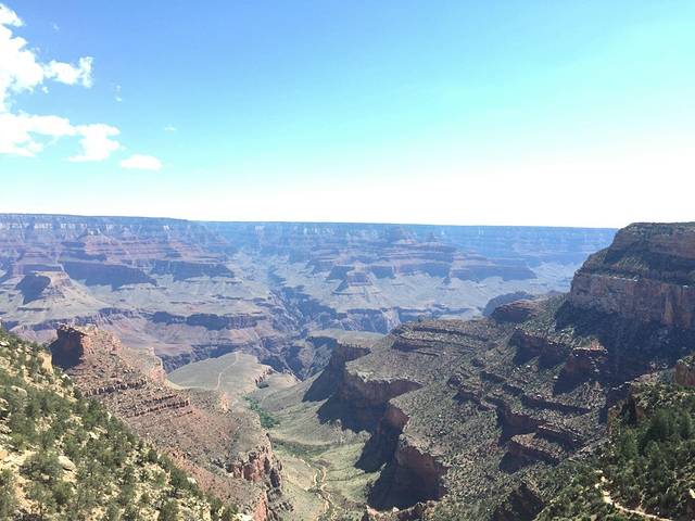 Bright Angel Trail:全长19公里,可以一直走到谷底,是一条非常经典的户外徒步路线,景色非常壮丽,但是此段道路十分陡峭,难度较大,来回需要8-12小时,如果要过夜需要获得露营许可。走到14公里处的Indian Garden,往返需要6-9个小时。此线路设有5个休息点,提供饮水和厕所。