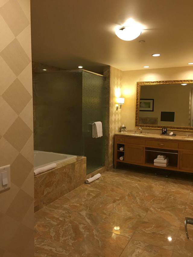 到拉斯维加斯已经晚上9点了,到底是赌城,服务那个好啊,酒店不是一般的赞,住了那么多天的帐篷还睡了几天车,今晚终于可以好好享受一把了。我们都说早知道今天房间那么好,我们就应该只徒步一段rim trail,多点时间呆在酒店哈哈我们也是很没出息的。