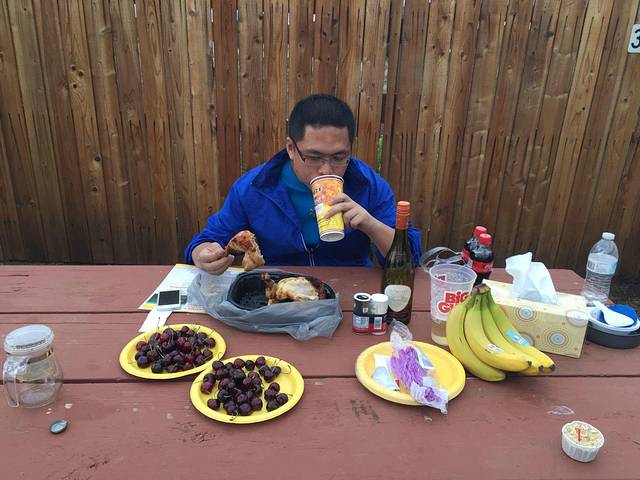 找了各种角度,车子在营地里挪来挪去发出各种噪音,话说老外还是比较自觉地,quiet time就真的很quiet。